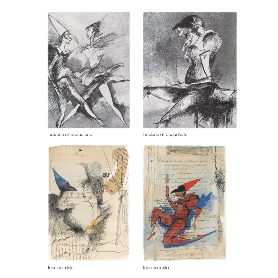 • 75 esemplari “Prove d’Autore” riservati all’artista, nel formato 24×33 cm, impressi su carta puro cotone da 160 g della Cartiera Magnani di Pescia, racchiusi in un prezioso contenitore in piena pelle, sul cui piatto è collocata un’opera a